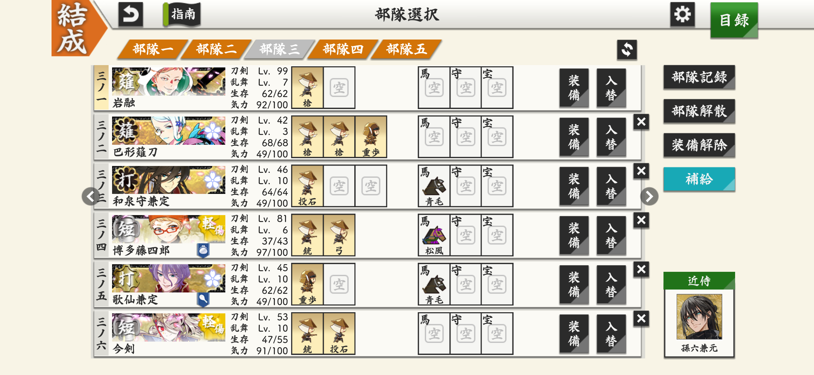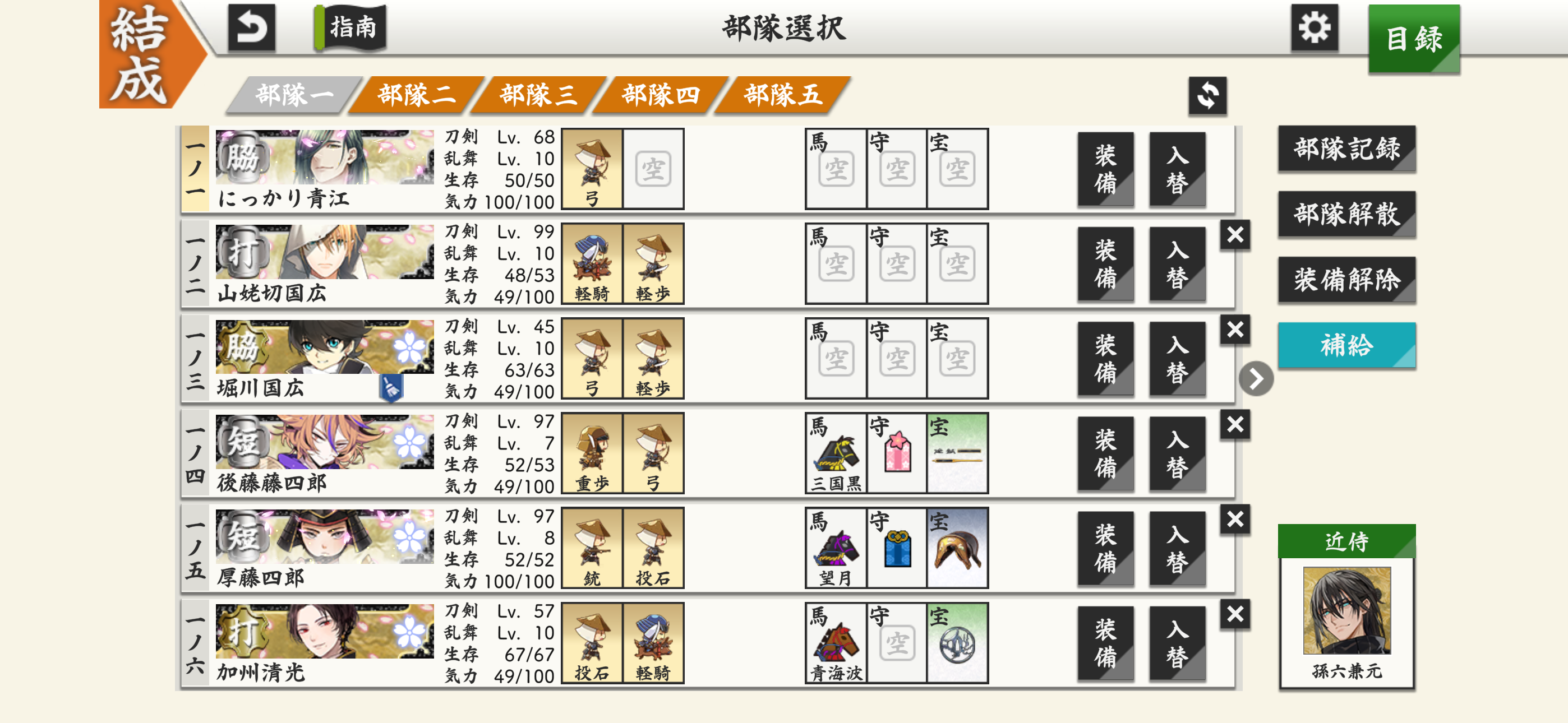 今さらだけど #刀剣乱舞 かぼちゃ大作戦の個人的備忘録 read more 最終日に実休さん確定報酬滑り込み!間に合った!! 今回の戦績です なかなかの偏り 日光さんと雲次さんは確定報酬もあったので3振り来てくれました!ありがたい〜 かぼちゃとかちよこ、普段は戦闘に出さない子たちを入れることになるのが意外と楽しいです (下に刀剣男士のシルエットが隠れた3×3のパネルがあり、そこにそれぞれ刀種とか刀剣の派閥とか装備してるものが指定されていて、その条件を満たした部隊で出陣して勝ったらそのパネルが開けられる→9枚全部開けたらその刀がもらえるというイベントです) こんなやつ (ツイート埋め込み処理中...)Twitterで見る 以下、去年はこんな感じのメンバーでまわってたんだ...と来年の私が懐かしむだろうメモ 青江、堀川、粟田口 脇差編成、短刀編成、打刀編成、二刀開眼 投石、弓、軽騎 けっこうこれだけでどこでもいける部隊 にっかりさん今まで全然使えてなかったところから、今回のかぼちゃと里で特カンストしました!去年の100振りプレゼントからLv1のままの子がたくさんいるし、せめてみんな特カンストはさせてあげたい... 村正 槍、太刀編成 槍兵、重歩兵、精鋭兵 なんかすごいマイペースを感じる部隊 隊長の蜻蛉切さんが「我が名は蜻蛉切...」ってやってる横で七星剣様が「きら星よ...」って話し出し、それを無視して鶯丸が「そこを退け!!」って馬に乗って先制攻撃してるの見たときさすがに面白くて笑った あと槍って意外と速いんだなぁ、よく大千鳥君が誉とってた 三条、兼定 薙刀、打刀、短刀編成 槍兵、銃兵、投石兵 好きだけどあんまり部隊に入れられてなかったメンバー多くて嬉しい 大太刀編成用 育ってる大太刀が全然いなくて困った... ここが一番戦力的に危うかったので貞ちゃんに入ってもらいました 短刀がいると打ち漏らしを叩いてくれるので助かります 来、左文字 あと1ターンで勝利せよとか夜戦で安定して勝ちたいとき用、薬研がいるので安心部隊 左文字のときだけ面影を宗三に変えてました 左文字も小夜しか育ってない... 12月で本丸結成一周年なので、二年目は部隊に入れたこともない子たちを使ってみたいなと思っています。 江とか一文字とか、グループごとほとんどよくわからなくてですね... そして一周年には貞ちゃん、薬研、後藤くん、厚を極開花させたいです!頑張るぞ〜🌸close 2025/11/09