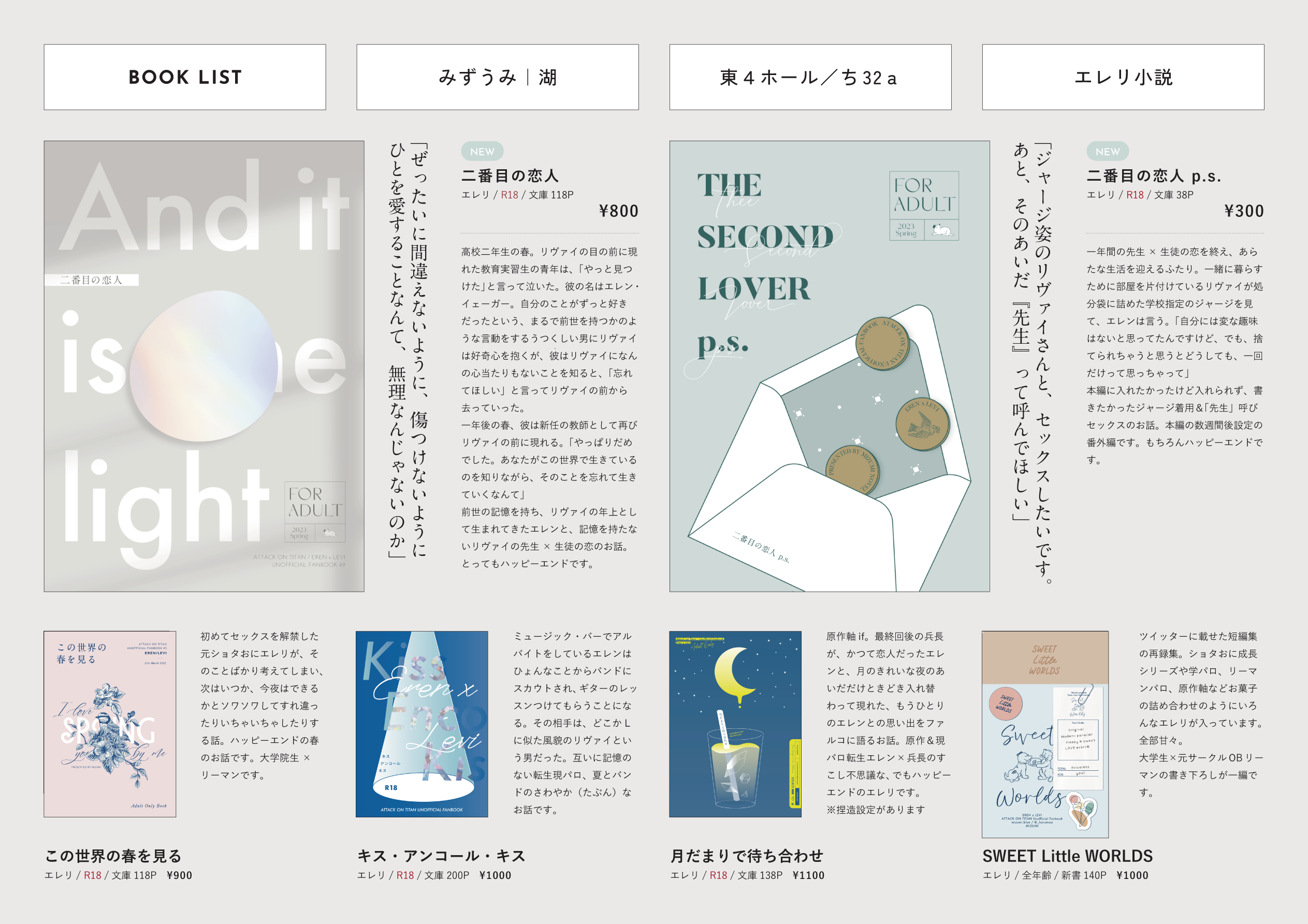 こちらにも貼っておきます、3/19春コミのお品書きです。