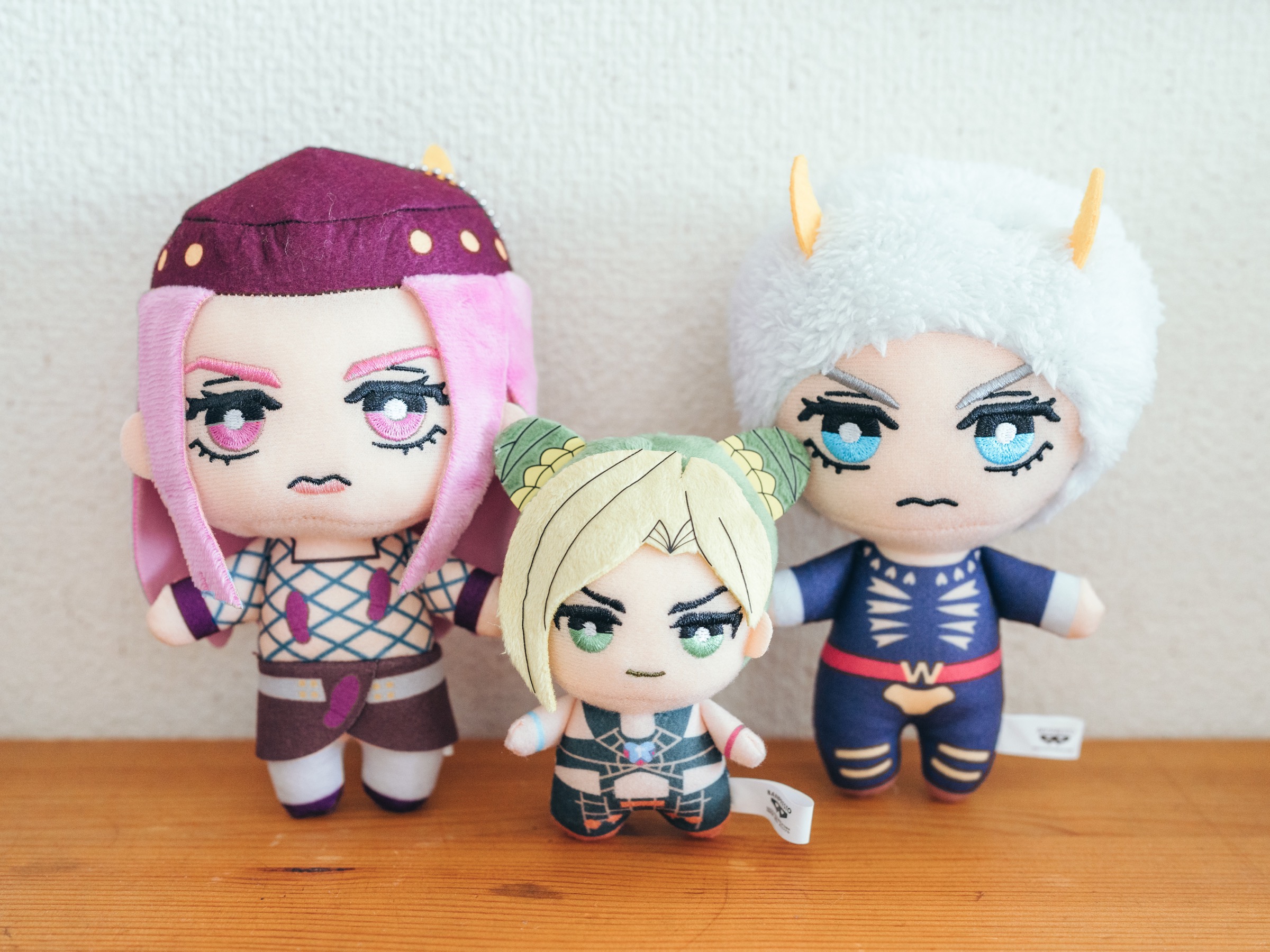 memo きのうのきょうで行ってきた… クレーンゲームほんとうに下手くそなんだけどなんとかとれた(店員さんのおかげ) めちゃくちゃかわいい😭 ちっちゃい徐倫をアナスイとウェザーが守る図です 2023/01/20